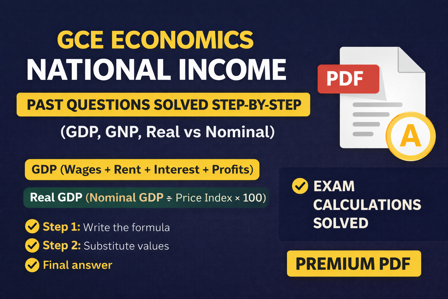 GCE Economics National Income – Past Questions Solved Step-by-Step (GDP, GNP, Real vs Nominal) | Premium PDF